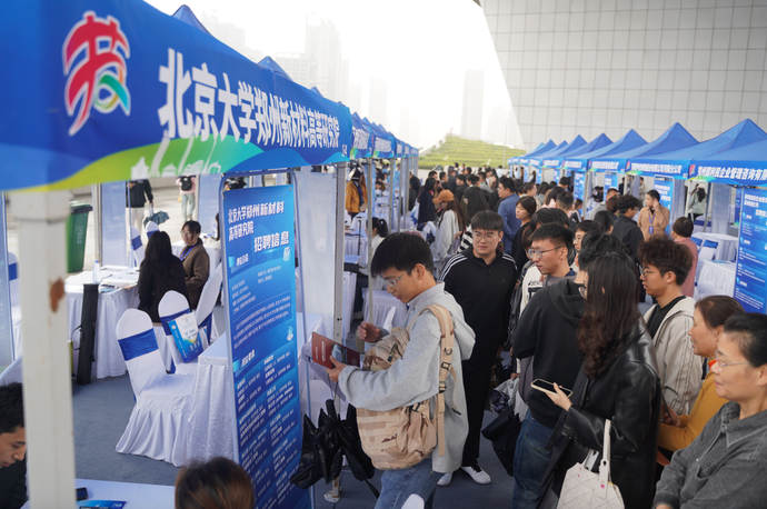 雨勢稍緩時,北理工鄭州智能科技研究院的展位前已排聚滿了人。“嵌入式軟件工程師”“博士后研究崗”的字眼被求職者們反復打量討論。