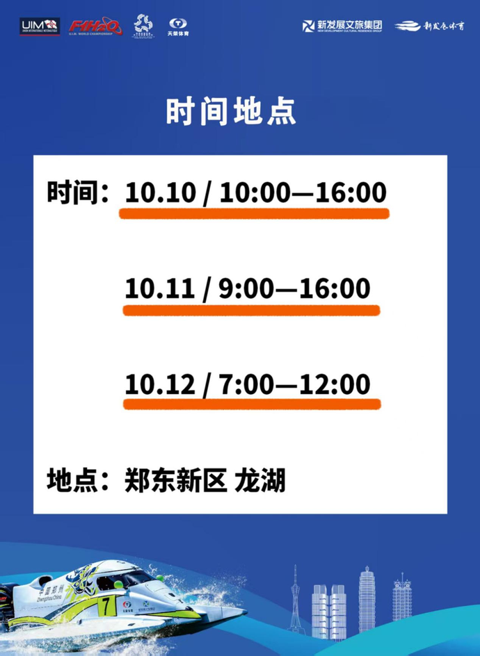 2025世界F1H2O摩托艇中國鄭州大獎賽,10月10日~12日強勢來襲。這不僅是全球頂級的極速水上盛宴,更是一場不容錯過的城市狂歡。