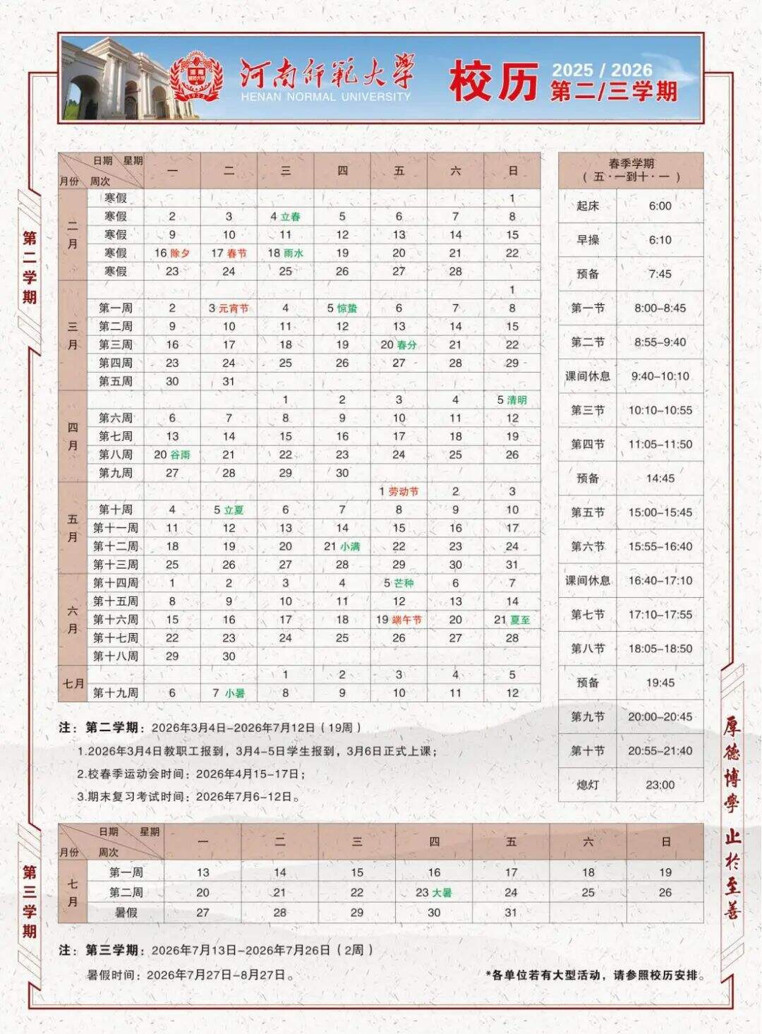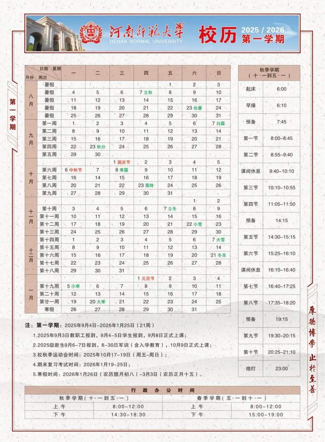 河南多所高校公布2025~2026學年校歷,明確2026年寒假時間多集中在1月中下旬至3月初。