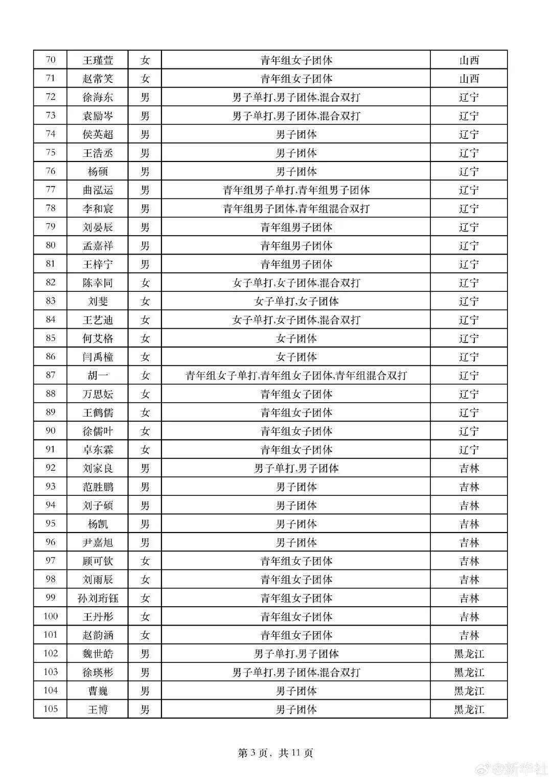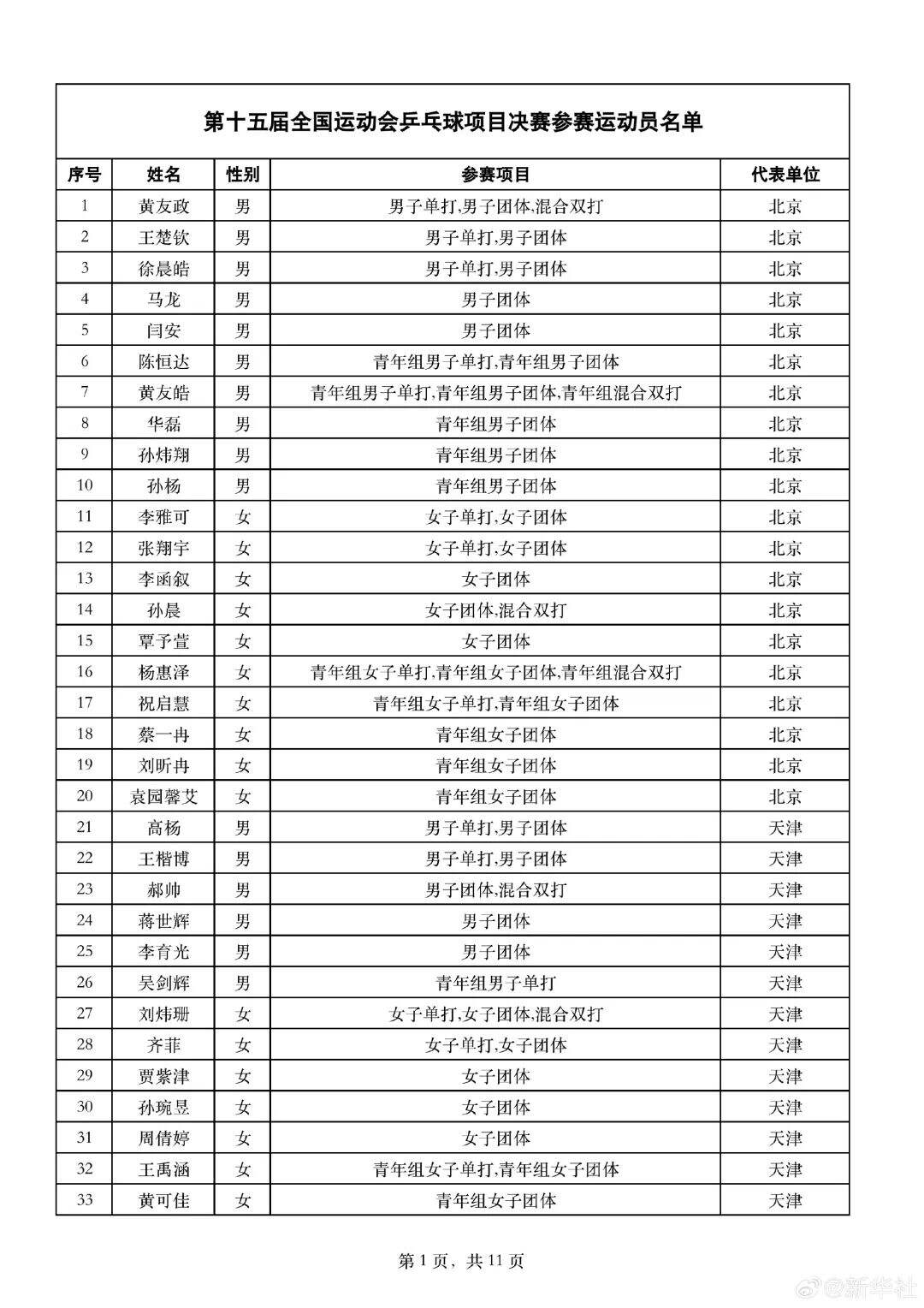 中國乒乓球協會官網發布關于公示第十五屆全國運動會乒乓球項目決賽參賽運動員名單的通知,馬龍、孫穎莎、樊振東、王楚欽、王曼昱、陳幸同、蒯曼、王藝迪、林詩棟、梁靖崑、林高遠、向鵬、周啟豪等運動員的報項已出爐。第十五屆全國運動會乒乓球項目決賽將于11月7日至20日在澳門舉辦,一起為所有運動員加油!