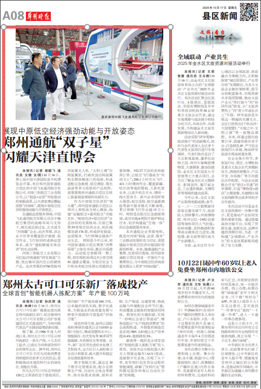 作為中部低空經濟的“領頭雁”,鄭州國家通航示范區以鄭州上街機場為核心載體,構建“運輸航空+通用航空”功能互補、“樞紐經濟+低空經濟”業態協同的發展格局,目前已集聚59家低空經濟企業,機隊規模突破176架,形成研發制造、運營服務、飛行保障全鏈條產業生態。 特別是今年以來,鄭州國家通航示范區聚焦“消費場景”立體化布局,激活市場潛力。啟動低空智聯網一期工程,將實現機場周邊5公里空域5G通感全覆蓋,為低空安全飛行和各類低空場景應用提供必要保障。352.27萬畝的農林植保訂單,讓低空飛行器成為“田間衛士”;298.1小時滅火飛行、421小時增雨作業,覆蓋新疆、哈爾濱等地的警航、人影托管業務,讓直升機在滅火、增雨一線大顯身手。新興業務同樣勢頭強勁:低空巡檢、航空遙感測繪等新興服務模式不斷涌現,累計保障飛行作業超15萬小時。特別是在航空應急救援領域,成功實施6例醫療救護轉運任務,初步構建起“空地一體”的應急救援服務體系。
