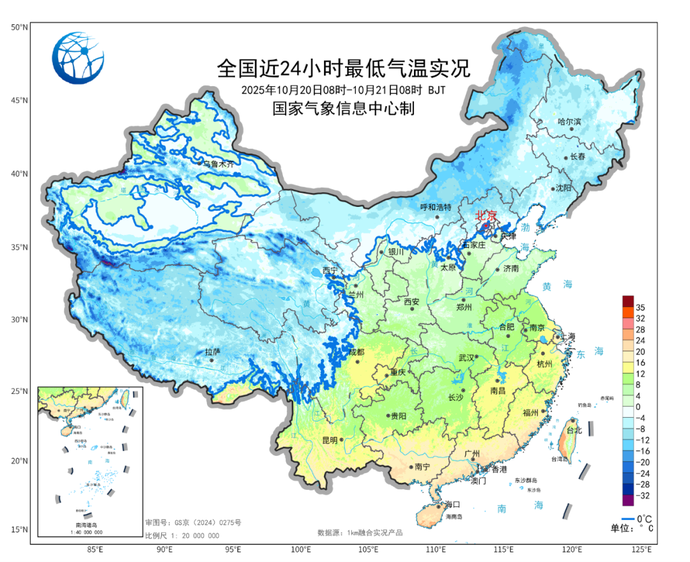 在冷空氣的持續“掌控”下,截至今(10月21日)晨08時,全國共有20個省會首府直轄市最低氣溫創下立秋后新低,寒意十足!其中,天津-0.2℃是立秋后氣溫首次跌破冰點。南京9.1℃、長沙9.9℃、貴陽8.4℃則是立秋后首次跌至10℃以下,妥妥的“一夜入深秋”。