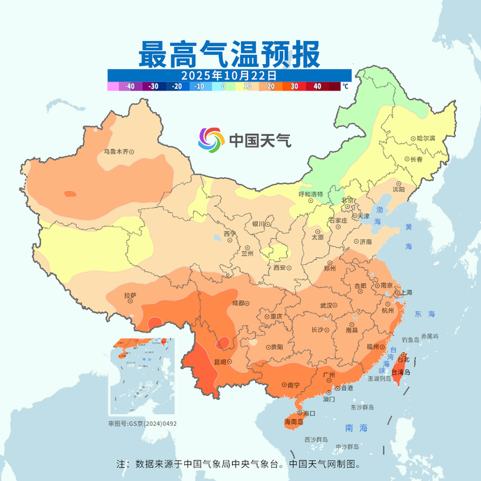 今天白天,北方大部已經開始逐漸回暖,但南方仍在持續降溫中。截至14時,在國家級氣象監測站中,僅云南景洪氣溫超過30℃。江南一帶普遍在20℃以下,華南多地20℃出頭,像廣州、長沙,今天都提前體會到了常年12月的涼意。