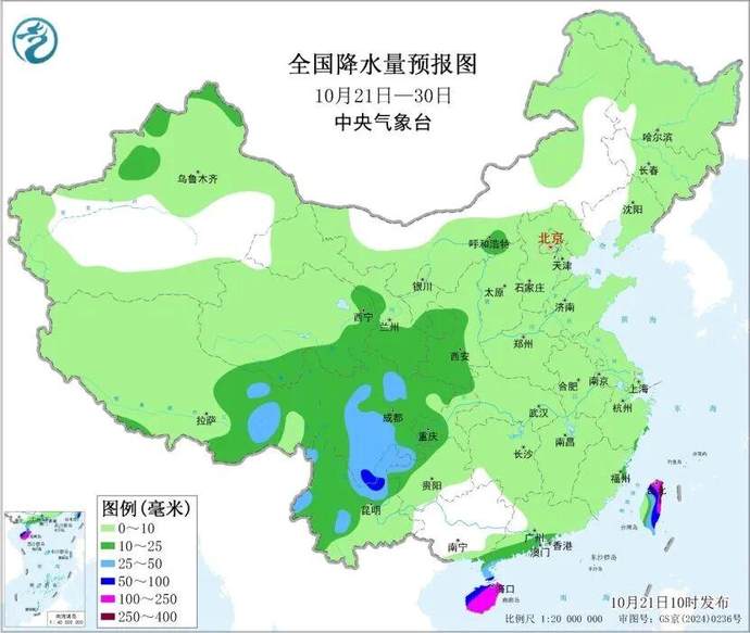 回顧10月中上旬,西北地區東部、華北、黃淮等地降水較常年同期明顯偏多,特別是北京、山東、河北、山西、甘肅、寧夏、陜西7個省區市,平均降水量為同期最多。