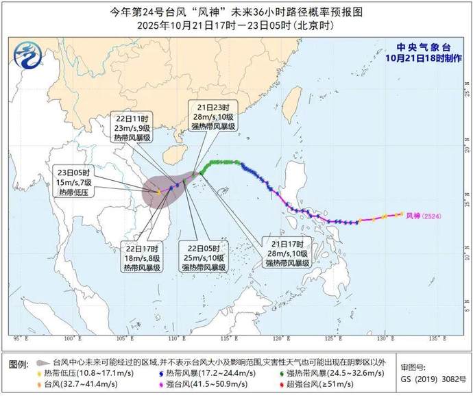 雖然“風神”不直接登陸我國,但它仍會給我國華南沿海及部分海域帶來較強的風雨天氣。明后天,海南、臺灣等地還會有大到暴雨,局地或現大暴雨。同時,東海西南部、臺灣海峽、臺灣以東洋面、浙江南部沿海、福建沿海、南海西北部和中西部的部分海域或地區的風力可達9級至10級,陣風11級至12級。提醒海上作業及出行的朋友們務必注意安全,做好相應的防范措施。