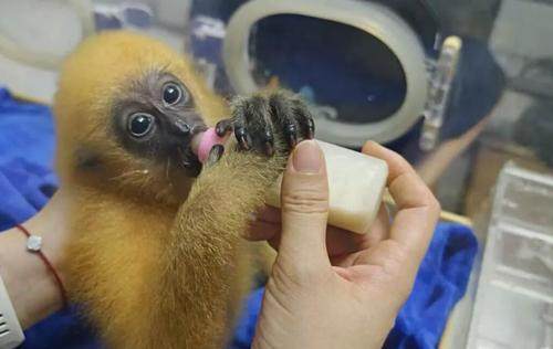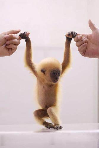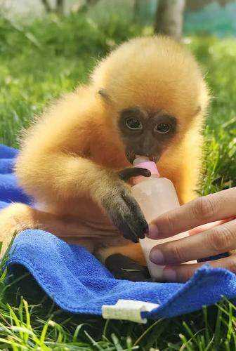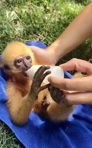 據鄭州市動物園飼養員介紹,今年6月,長臂猿爸爸阿里和媽媽大黃有了它們的第三個孩子——“小滿”,或許是帶老大老二太累的緣故,在老三“小滿”出生后,媽媽大黃就不再想親力親為帶娃了,無奈之下,飼養員們就接過了“育兒重任”,化身專屬“奶爸奶媽”,正式開啟了小滿的人工育幼之旅。
